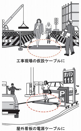 ・歩道や工事現場などの通路を横切って仮設されたケーブルにかぶせて、安全に通行できる通路を確保し、ケーブルも保護。