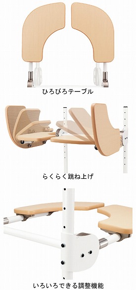 ・テーブルの上に前腕を置く事で、排泄に適した前傾姿勢を取る事ができます。