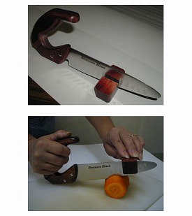 ・ハンドル底部を支点として使用すれば、包丁を持ち上げなくても切ることができます。