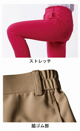 ・ウエストの圧迫感を軽減し、はき心地を重視した脇ゴム仕様。