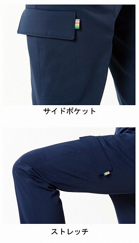 ・動きやすさと収納力が魅力。間口が広く手が入れやすいサイドポケット付き。2WAYストレッチ。