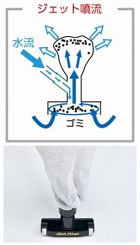 ・水道の水圧のみを利用(ジェット噴流の原理)し、注水しながら清掃します。