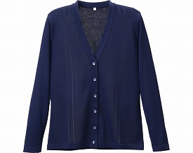 ・淡い配色とやさしい風合いのサマーカーディガン。エレガントな透かし編が好印象に装います。